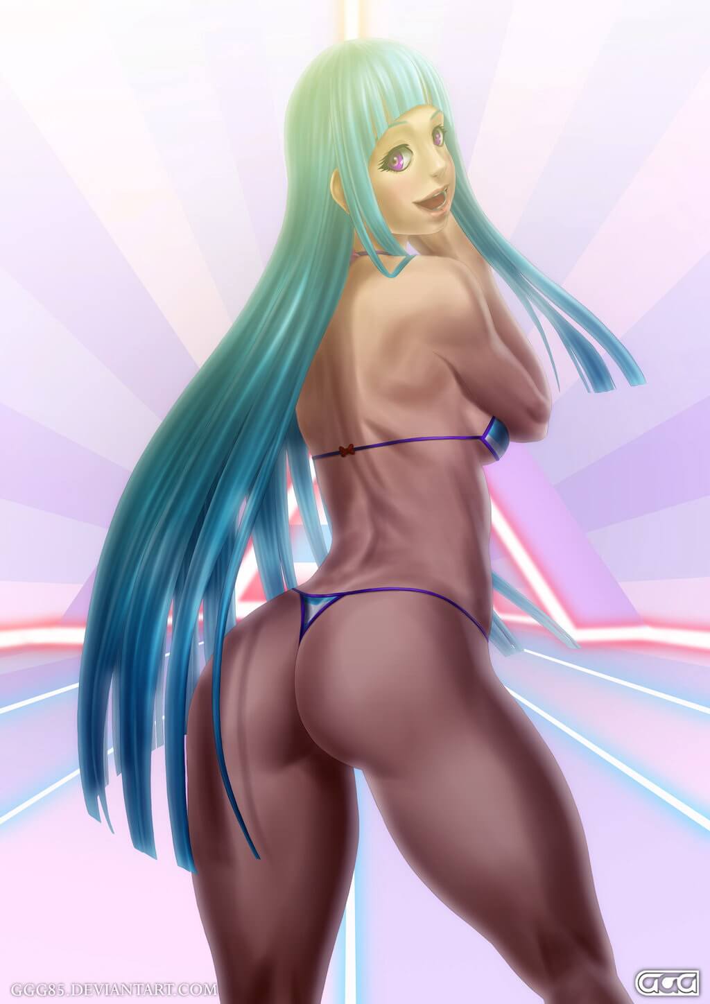 La jeune MeMe en bikini montre ses fesses galbés en string dans cette image de sexe gratuit tirée des photos x de la parodie porno de ME!ME!ME! Hentai.