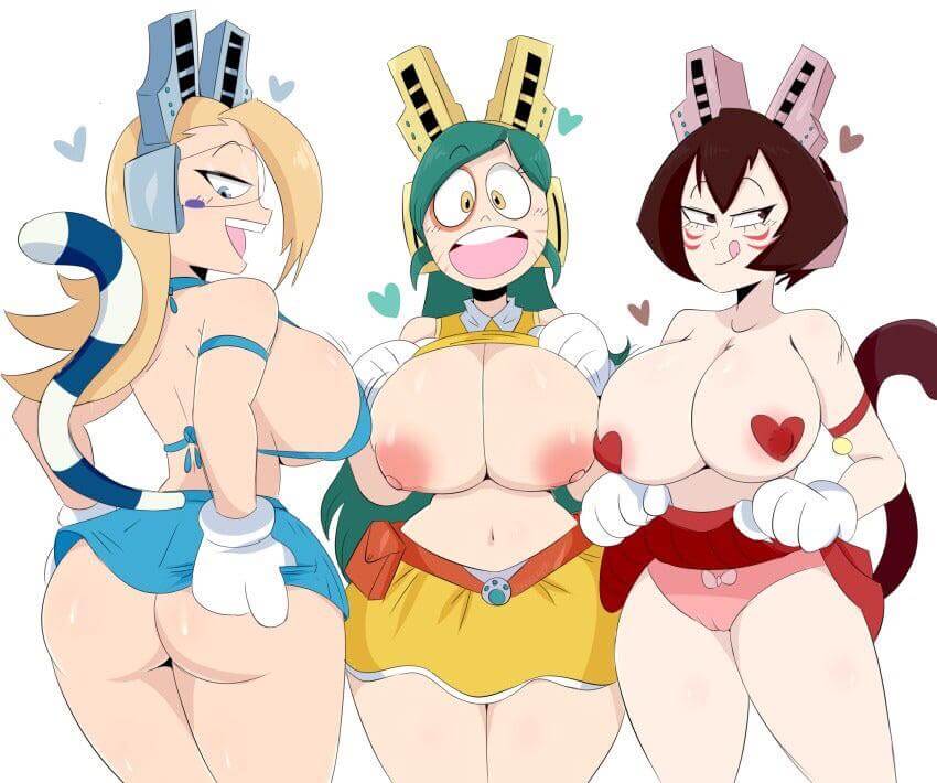 Ragdoll (Tomoko Shiretoko), Mandalay et Pixie-Bob exhibent leurs attributs féminins dans cette image de sexe gratuit tirée des photos x de la parodie porno de My Hero Academia Hentai (MHA).